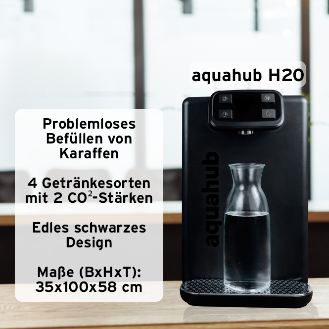 Im Vergleich zu Flaschenwasser überzeugt der aquahub auch in puncto Nachhaltigkeit. PET-Flaschen sind gegenüber Mehrweg-Glasflaschen zwar günstiger, haben jedoch wesentliche Nachteile: Weil Plastikflaschen oft nicht vollständig dicht sind, verliert das enthaltene Wasser mit der Zeit seinen frischen und klaren Geschmack.