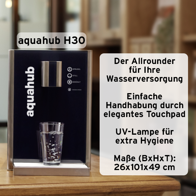 Mit dem aquahub Wasserspender mit Festwasseranschluss entscheiden Sie sich für eine gesunde, nachhaltige und vor allem ökonomisch effiziente Lösung: